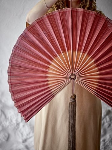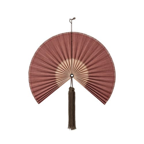 קישוט הקיר Jaime מבית Bloomingville הוא מניפה דקורטיבית ואלגנטית העשויה במבוק בגוון אדום-רוזה עמוק ומרשים. העיצוב המתוחכם כולל פרנזים (Tassels) כהים בתחתית וחבל תלייה תואם, מה שהופך אותו לפריט עוצמתי שמוסיף חמימות ונוכחות אמנותית מעל המיטה, במשרד או בחלל המגורים.