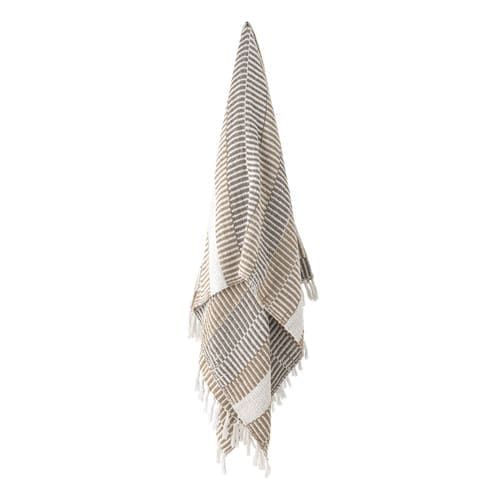 שמיכת Isnel של המותג הדני Bloomingville, עשויה מכותנה ממוחזרת, ומשלבת פסי צבע עדינים בגוונים בהירים עם עיטור גדילים בקצותיה. היא מוסיפה חמימות ורוך לעיצוב הפנים, ומתאימה גם לפיקניק או לערב קיץ נעים באוויר הפתוח.