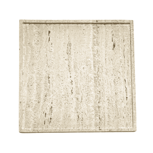עשוי משיש טרוורטין טבעי בגוון בהיר ובעל שוליים נמוכים, המעניקים לו תחושת קלילות ואיזון מושלם בין גודל למראה מעודן. גודלו המרשים מאפשר להציב אותו על שולחנות סלון, קונסולות, שידות – והוא יוצר תחושת “layering” עדינה שמעשירה כל רהיט ומוסיפה לו מגע של יוקרה טבעית.