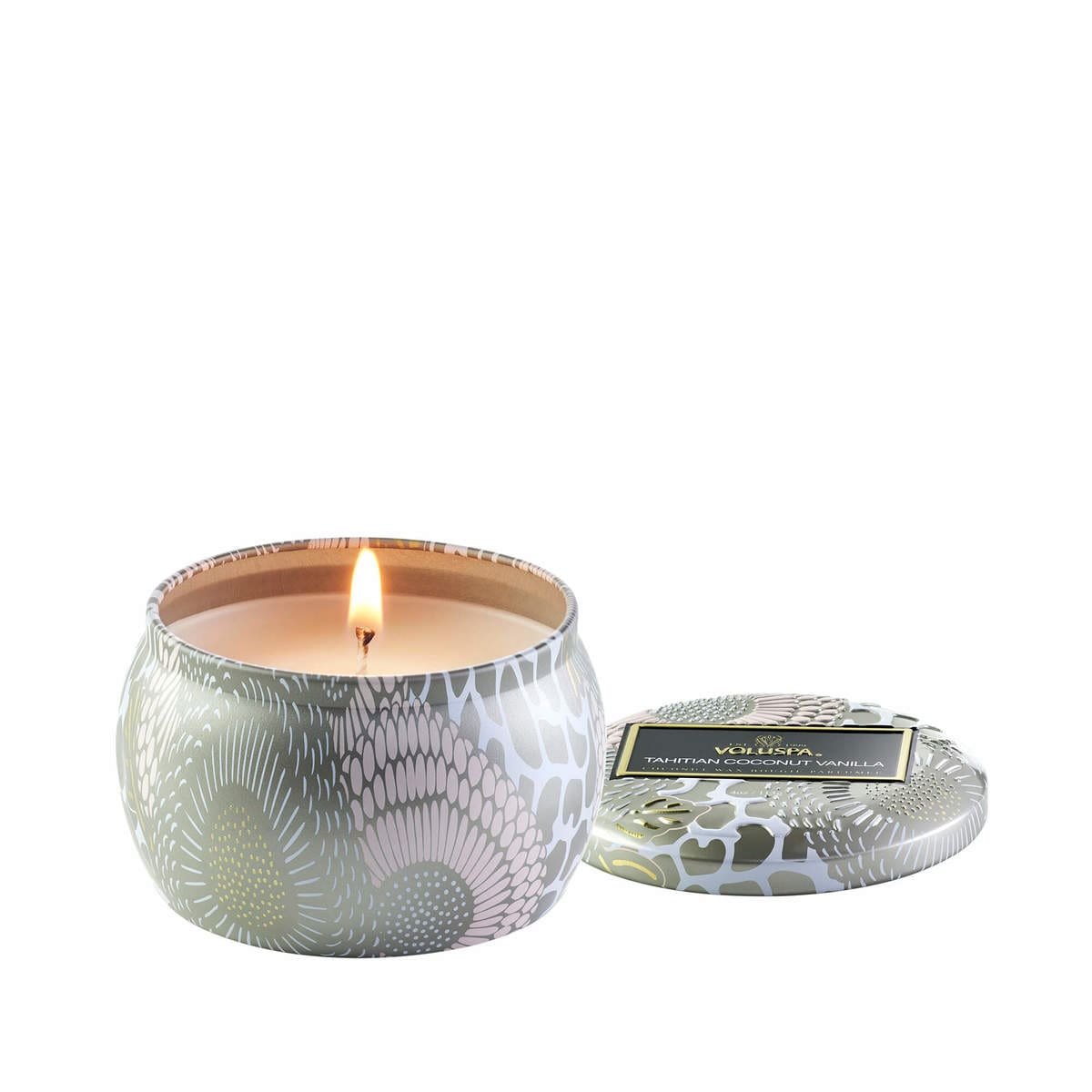 נר ריחני בקופסת פח 113 גרם – Tahitian Coconut Vanilla VOLUSPA