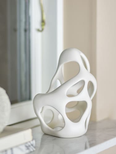 הפריט הדקורטיבי Chanet מבית Bloomingville מגלם את עקרונות העיצוב הסקנדינבי הקלאסי. הוא עשוי פולי-רזין איכותי בגימור מט לבן נקי. הצורה האלגנטית והמעודנת של הפריט יוצרת מראה קליל והרמוני שכה אופייני לסגנון הנורדי, ומושלמת לשימוש כאלמנט עיצובי מינימליסטי ויוקרתי על מדפים ושולחנות.